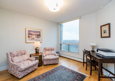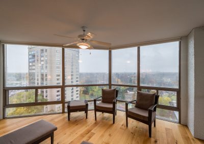 This is a fabulous condo in this highly desirable building. The condo has been tastefully updated throughout featuring amazing kitchen with high end appliances quartz countertops and spacious and bright breakfast area. The generous primary bedroom offers a deluxe spacious ensuite with walk-in spa tub and large glass walled shower. The main living area is open concept great room style with dining area and living room area entering onto a spacious den and to a four season sunroom.