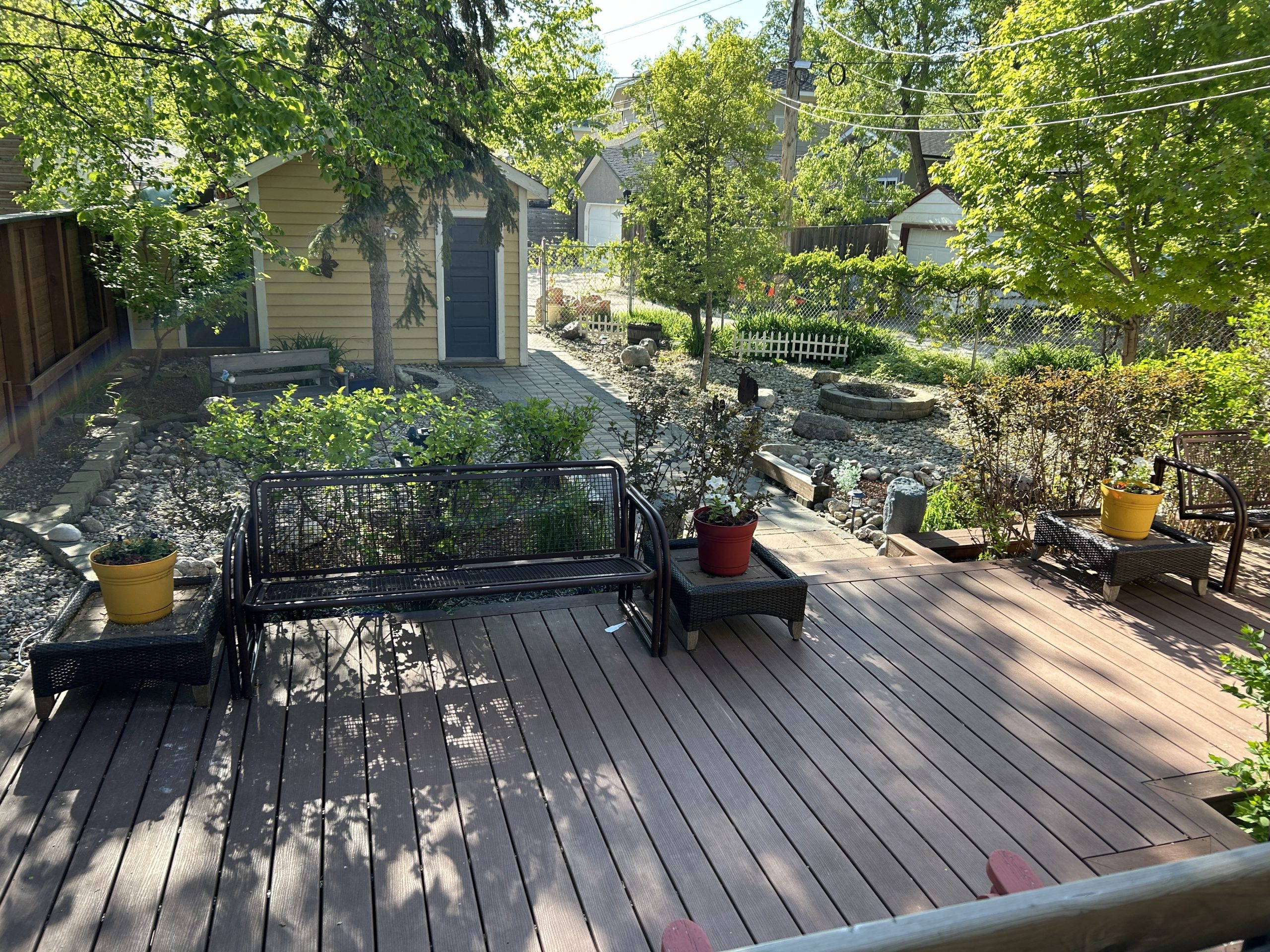 Fabulous Cape Cod style bungalow on large lot north of Academy. The fantastic open-concept main floor features a large, bright living room with vaulted ceiling, a massive island kitchen with quality appliances, dining room, and a large 4-piece bathroom. Garden doors lead to a newer deck overlooking a private, low-maintenance backyard which features a patio, single garage and matching shed, and a beautifully rustic gazebo with access to the back entry. The cozy second level has 2 bedrooms and a 2-piece washroom.
