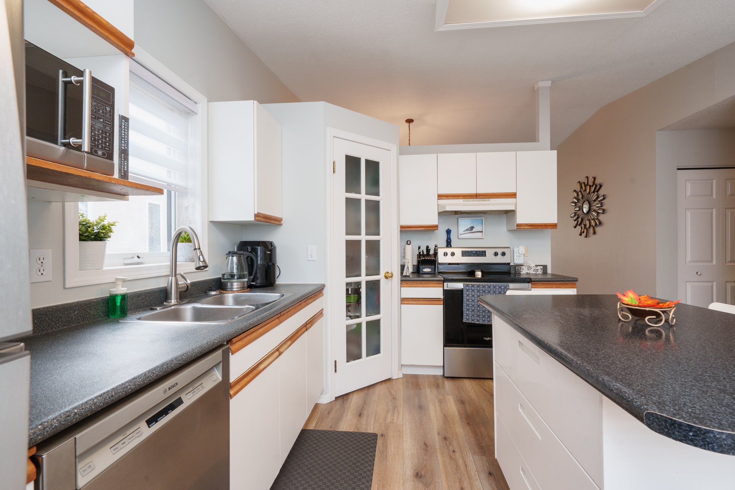 Fabulous Richmond West Bungalow – 50 Branson Crescent is affordable, bright, and updated in all of the right ways. This home features a functional family floor plan and offers 1140 square feet, 4 bedrooms, and 2.5 bathrooms (with the potential to add a third shower!). The main level consists of a large living room/dining room, kitchen with newer appliances, island and a garden door to the the deck, and 3 spacious bedrooms including the primary suite which has a large walk-in closet and 4-piece ensuite. The lower level has a very flexible space currently utilized as a rec room and home office, an additional bedroom (#4), spacious laundry room, a 2-piece bathroom, while also providing tons of storage space.